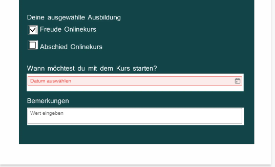 Wähle hier bitte das Startdatum aus - Also das Datum, zu dem Du mit Deinem Kurs starten möchtest (bitte aufpassen, für dich gilt "Abschied Onlinekurs"):